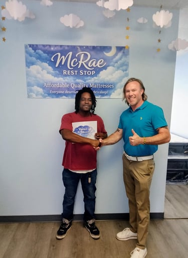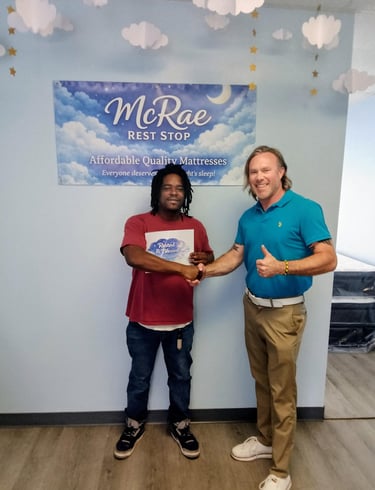 No pushy sales people working off commission. Just the owners, Adam & Taylor McRae! Call or text, come in and try the mattresses, pick the one you want and take it home today!